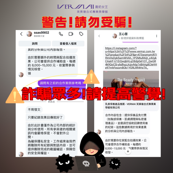 本公司近日發現,有不明詐騙帳號冒用本公司名義,對外聲稱提供「產品體驗」或「合作邀約」,並要求民眾拍攝及提供胸部或私密部位之照片、影片等影像資料。